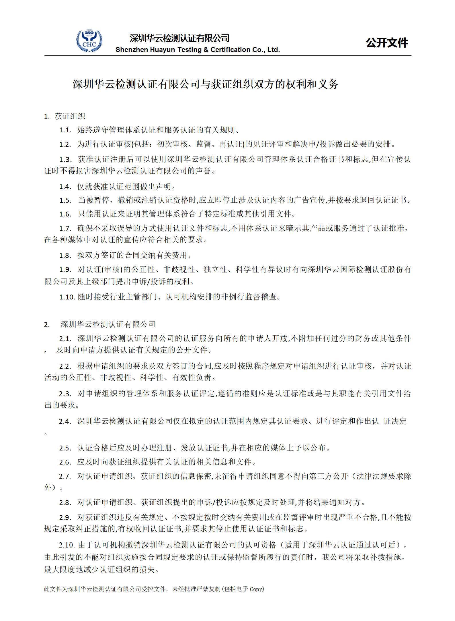 公开文件:公司与获证组织双方的权利和义务